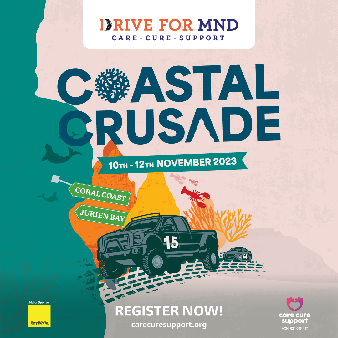 Get excited and register your car for this year’s Drive for MND ‘Coastal Crusade’ from Friday 10th to Sunday 12th November.